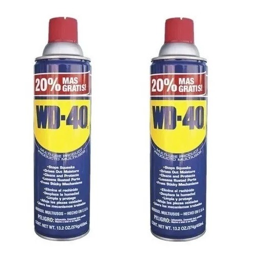 WD-40 Producto Multiusos original protege el metal del óxido, afloja piezas atascadas, desplaza la humedad y lubrica. Desplaza la humedad para prevenir el óxido y proteger sistemas eléctricos Penetra para aflojar piezas atascadas Lubrica para que el equipo funcione bien Limpia, eliminando aceite, suciedad, grasa y mugre Protege las superficies de metal contra el óxido y la corrosión