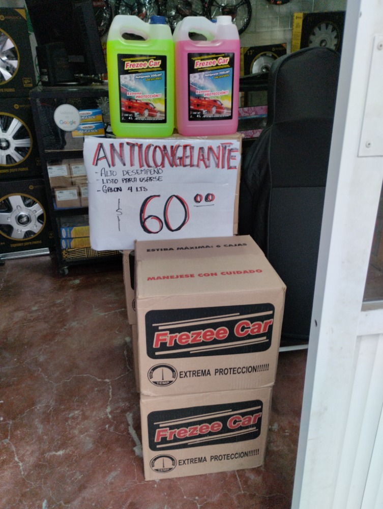 Tengo cinco cajas de líquido refrigerante la mejor opción por economía para proteger el sistema de ventilación de tu automóvil deja de utilizar agua que puede causar corrosión a tu auto. Refrigerante rosa para climas extremos tengo 5 cajas Refrigerante verde alto desempeño tengo 5 cajas