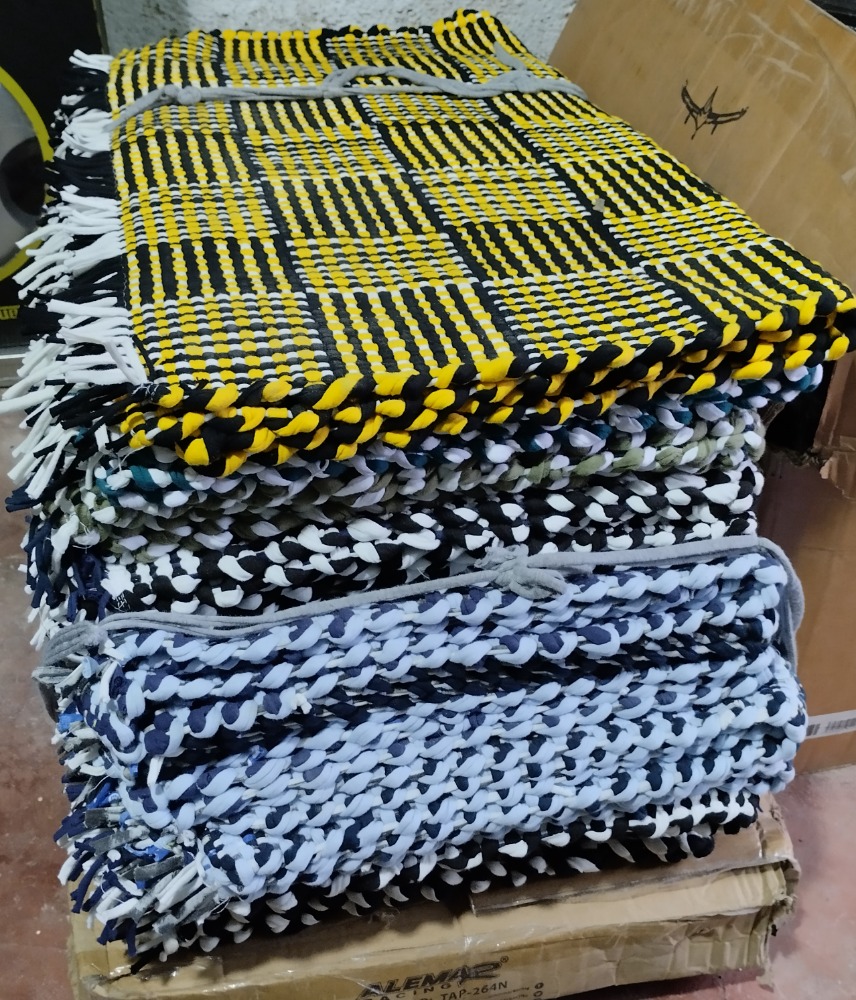 Tapete Multiusos Tejido artesanal, 100% hecho a mano , mide 155 cm. X 63 cm. Este tapete se puede usar para proteger la tapicería del automóvil, o para realizar talacha al auto etc.