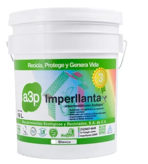 Más informaciónSIN COSTO DE ENVIO A NIVEL NACIONAL DESDE UNA PIEZA Recubrimiento impermeabilizante elaborado con resinas acrílicas, reforzado con partículas de caucho vulcanizado reciclado, casi indestructible, con gran capacidad impermeable y resistencia al medio ambiente. Ayuda al medioambiente al ser un producto 100% ecológico en donde se reciclan llantas para su elaboración.