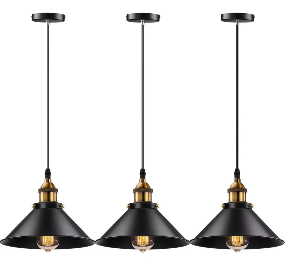 Paquete de 3 lamparas colgantes vintage tipo industrial. Ideal para: Cocinas,Pasillos,Salas,Terrazas,Cafeterias,etc. Brindan una sensacion calida y agradable... * No inlcuyen Bombillos..!!! Inf: whatsapp 664 1930909