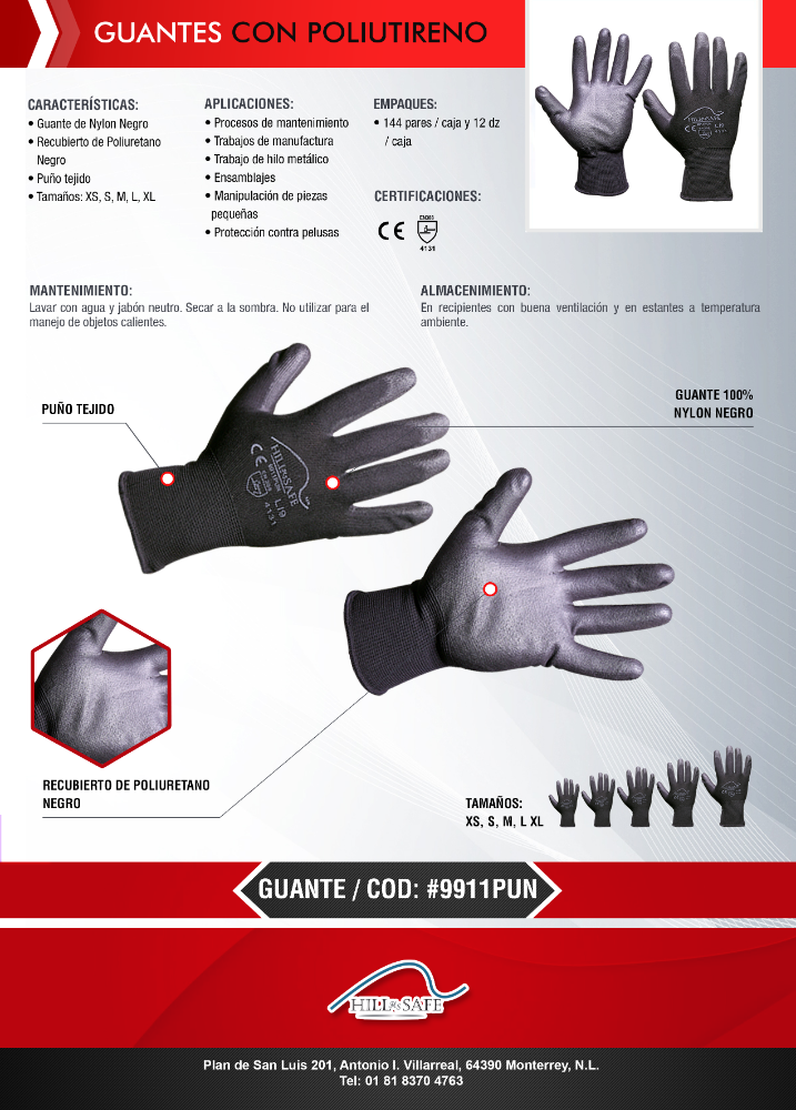 GUANTE USOS MULTIPLE PU/ NYLON CON PALMA DE POLIURETANO T// CH, MD GDE NEGRO PAQUETE DE 12PARES