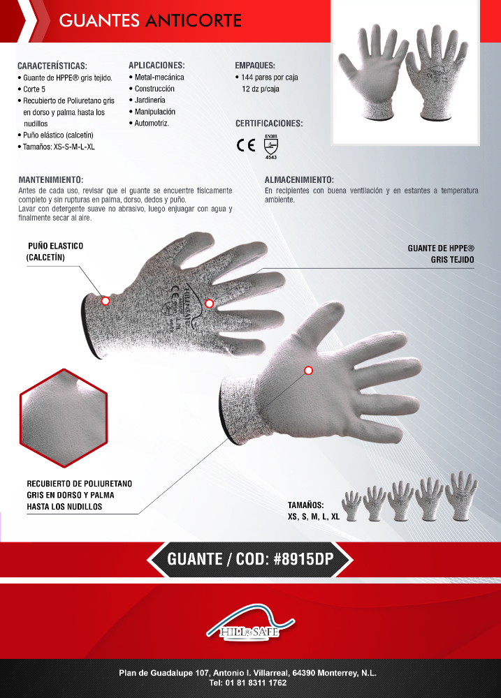 GUANTE ANTICORTE NIVEL 5 GRIS PAQUETE DE 12 PRES TLLS / CH, MD, GDE