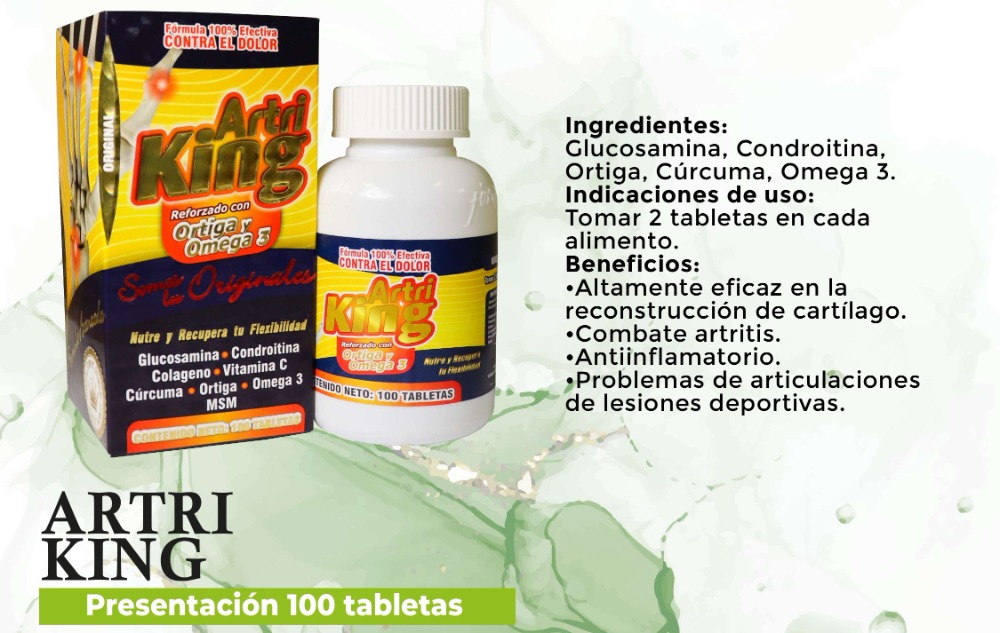 Artri King Original de Registro, 100 Tabletas, Auxiliar en Dolores Musculares, Artritis, Reumas, Articulaciones, Ciática, Dolores de Rodilla, Perdida de Movimiento. Se toman 2 tabletas después de cada alimento. ¡ DIGA NO A LA PIRATERIA ¡