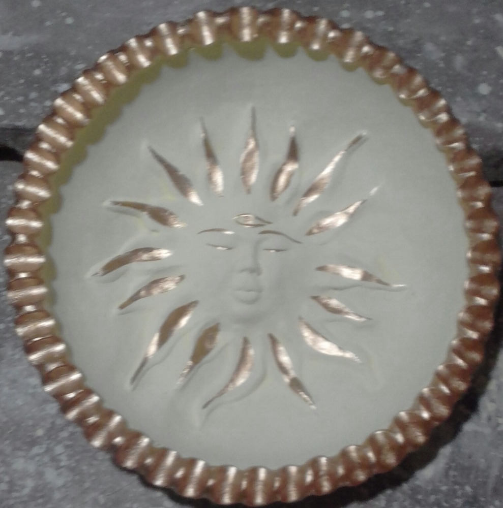 Tazón con Eclipse interior además los hay con sol y Luna elaborados de barro horneado a Alta temperatura para colgar en Paredes interiores o exterior
