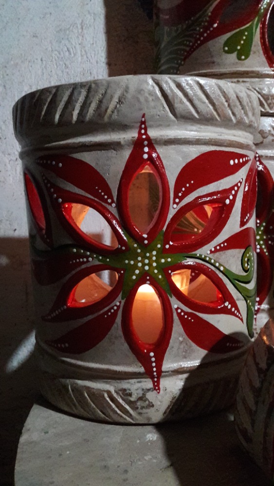 Más informaciónLuminaria de barro diseño noche buena funciona como plafon colocada a la pared