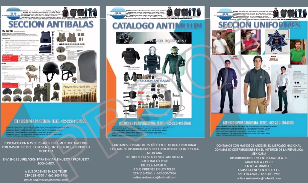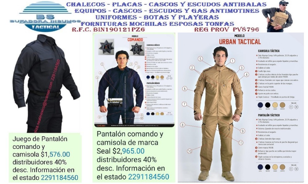 Más informaciónUniformes, Playeras, Camisetas, Botas para Policias Municipales, Estatales, Nacionales y Vialidad, Productos Forenses, Primer Respondiente, Alcoholimetros y Consumibles, Pruebas Rapidas Consumo de Drogas (hasta ocho parametros) y mas EN LA COMPRA DE MAS DE SEIS PIEZAS, PARES, JUEGOS, etc etc. SOLICITE su DESCUENTOS