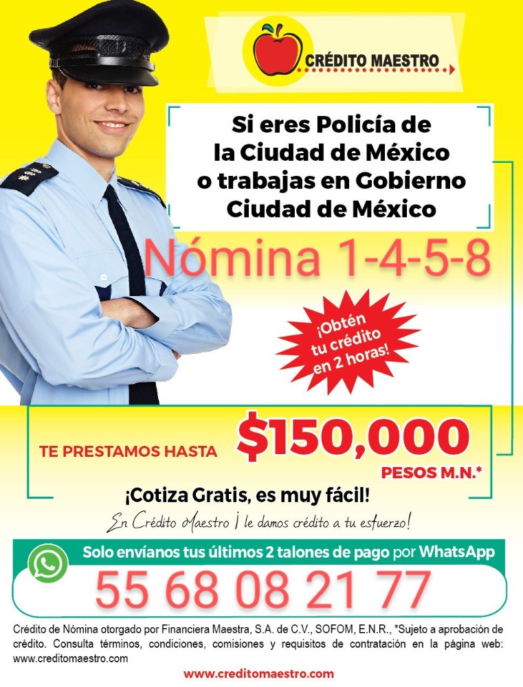 Más informaciónCréditos por descuento nómina para trabajadores de Gobierno CDMX Nómina 1-4-5-8 Trabajadores ISSEMyM y gem Pensionados Jubilado IMSS ISSSTE Trabajadores SEP INBA M E J O R A V I T
