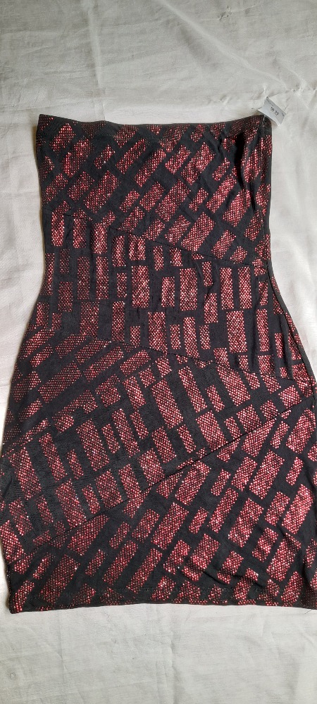 bonito vestido nuevo de strapless, color negro con rojo, talla L