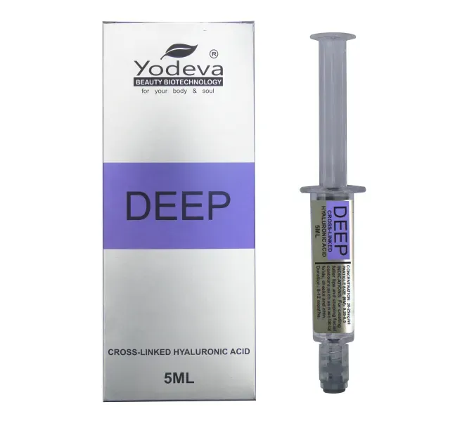 Más informaciónAcido Hialuronico Reticulado DEEP ideal para: Arrugas y pliegues faciales profundos, como los pliegues nasolabiales, que dan forma a los contornos faciales. Ideal para contorno nariz. Aumento (volumen) de labios y mentón. El acido Hialuronico YODEVA esta formulado bajo los mas altos estándares de calidad, para ofrecerte el mejor producto al mejor precio. contenido: 1 jeringa con 5ml de acido hialuronico reticulado Derm. 1 adaptador esteril para rellenar jeringas. (es decir de la jeringa de 5 ml podrás rellenar otras jeringas haciendo con esto varias dosis según lo requieras). 2 agujas esteriles medida 25g