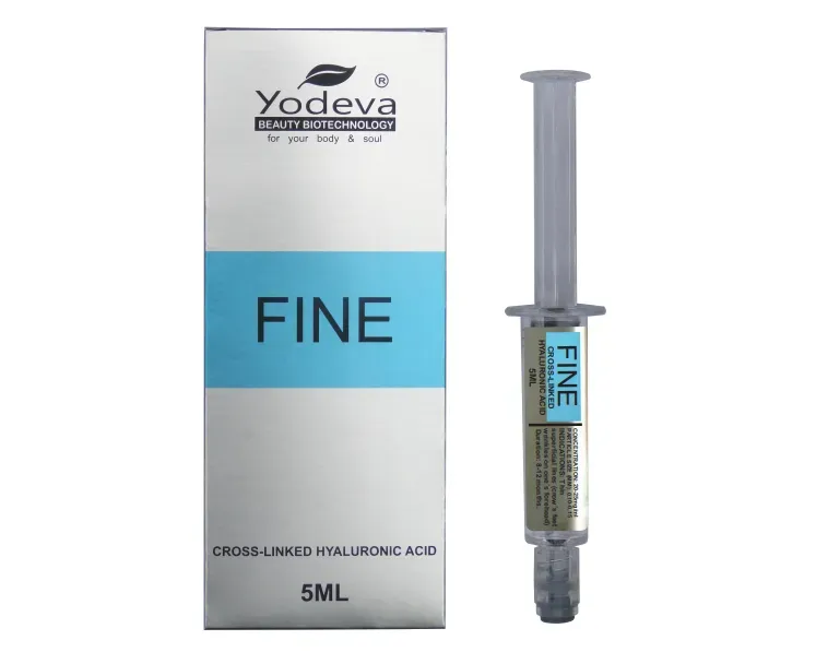 Más informaciónAcido Hialuronico Reticulado FINE ideal para: Mejillas, depresiones Patas de gallo en la esquina de tus ojos, LÃneas de preocupación que cruzan tu frente, LÃneas fruncidas entre las cejas, LÃneas verticales en la boca. El acido Hialuronico YODEVA esta formulado bajo los mas altos estándares de calidad, para ofrecerte el mejor producto al mejor precio. contenido: 1 jeringa con 5ml de acido hialuronico reticulado Fine. 1 adaptador esteril para rellenar jeringas. (es decir de la jeringa de 5 ml podrás rellenar otras jeringas haciendo con esto varias dosis según lo requieras). 2 agujas esteriles medida 25g