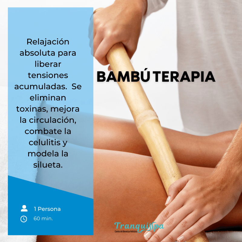 Más informaciónTécnica de terapia oriental, que a base de cañas de bambú de diferentes diámetros y medidas de largo. Se utilizan deslizándolas suavemente para trabajar cuerpo y la cara en base a su anatomía. Es un tratamiento para alcanzar un estado de relajación absoluta y liberar las tensiones acumuladas. Los movimientos de las cañas de bambú sobre la piel, producen un efecto sedante sobre las terminaciones nerviosas, es muy efectivo como relajante muscular . Antiguamente, la cultura mística oriental otorgaba al bambú propiedades mágicas. De esta forma creían, que la energía que circulaba por esta planta le permitía absorber las energías negativas del cuerpo y tras hacerla circular por el interior de las cañas, la volvería al cuerpo como energía positiva.