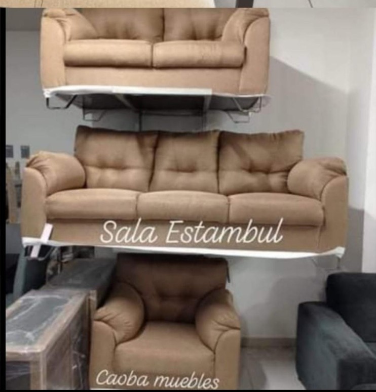 Más informaciónSala Estambul 3-2-1. Tapizada en Tela Lino color arena.