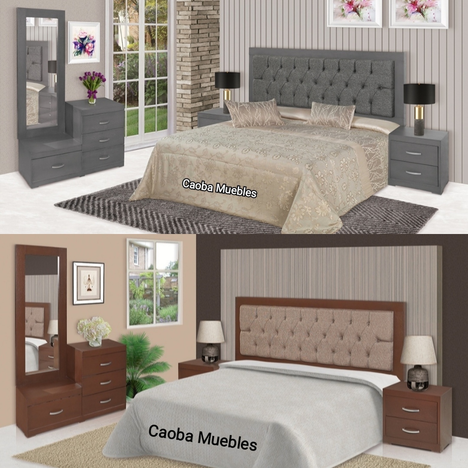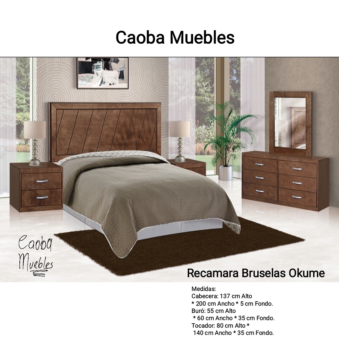 Más informaciónRecamara Bruselas Okume Incluye: Cabecera 2 Buros Tocador. Madera Okume