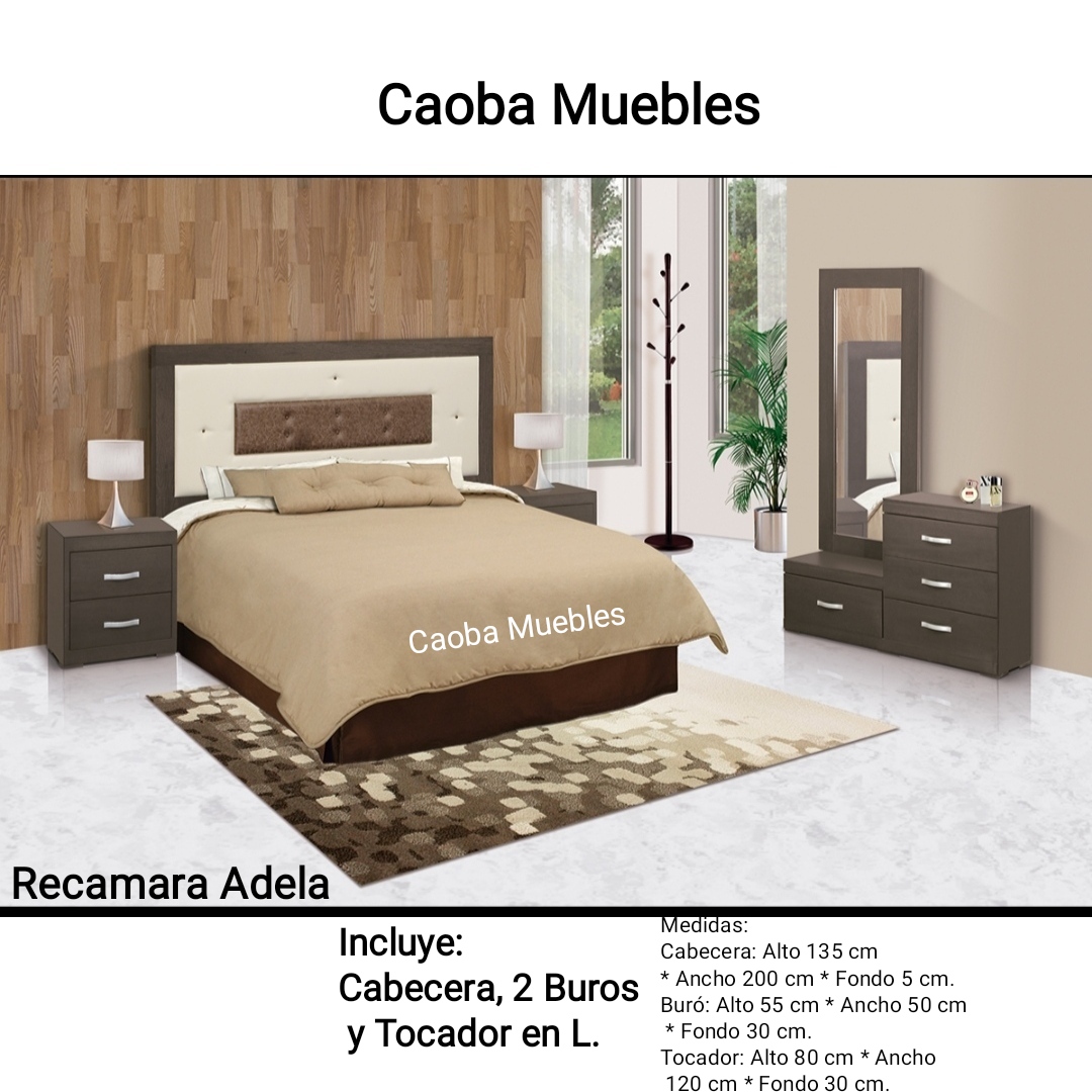 Más informaciónRecamara Adela Incluye: Cabecera. 2 Buros. 1 Tocador en L.