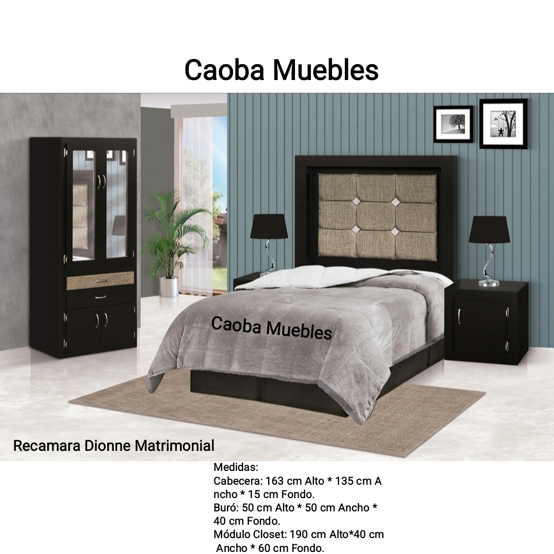 Recamara Dionne Matrimonial. Incluye: Cabecera Matrimonial. 2 Buros. Módulo Closet.