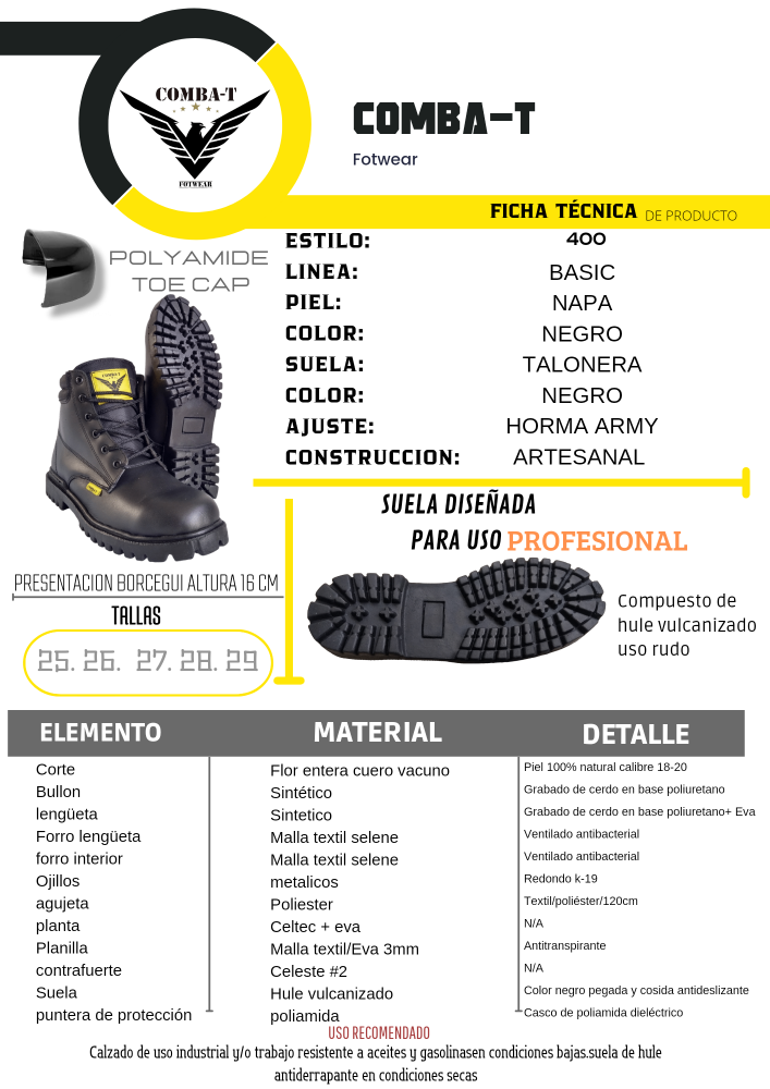Más informaciónBota de trabajo económica tipo BORCEGUI, Manejamos númeracion del 5 al 9 Con y sin casquillo de poliamida Somos fabricantes de León GTO 🦠Contactanos: Via watsaap: 477-481-82-64 Via telefónica: 477-754-18-52 Facebook: fabrica de calzado COMBA-T