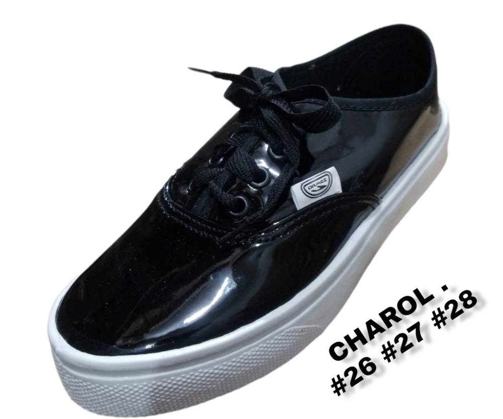 Más informaciónTennis negro charol. Tallas #26 #27 #28 Suela antiderrapante blanca. Lote de 50 pares.