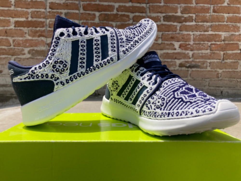 Más informaciónTenis Adidas bordado a mano con chaquira por artesanos huicholes. Talla 24 MX.