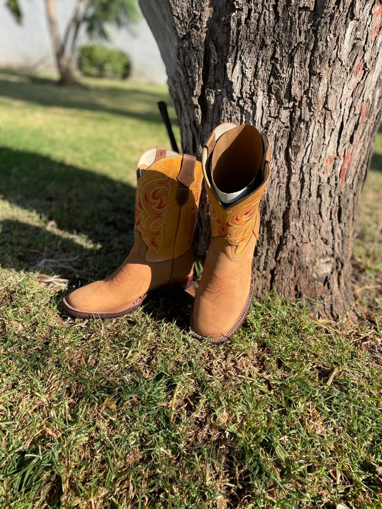 Más informaciónBota California Horma bull Color miel Corte nubuck Tubo piel Forro vacuno Suela cuero